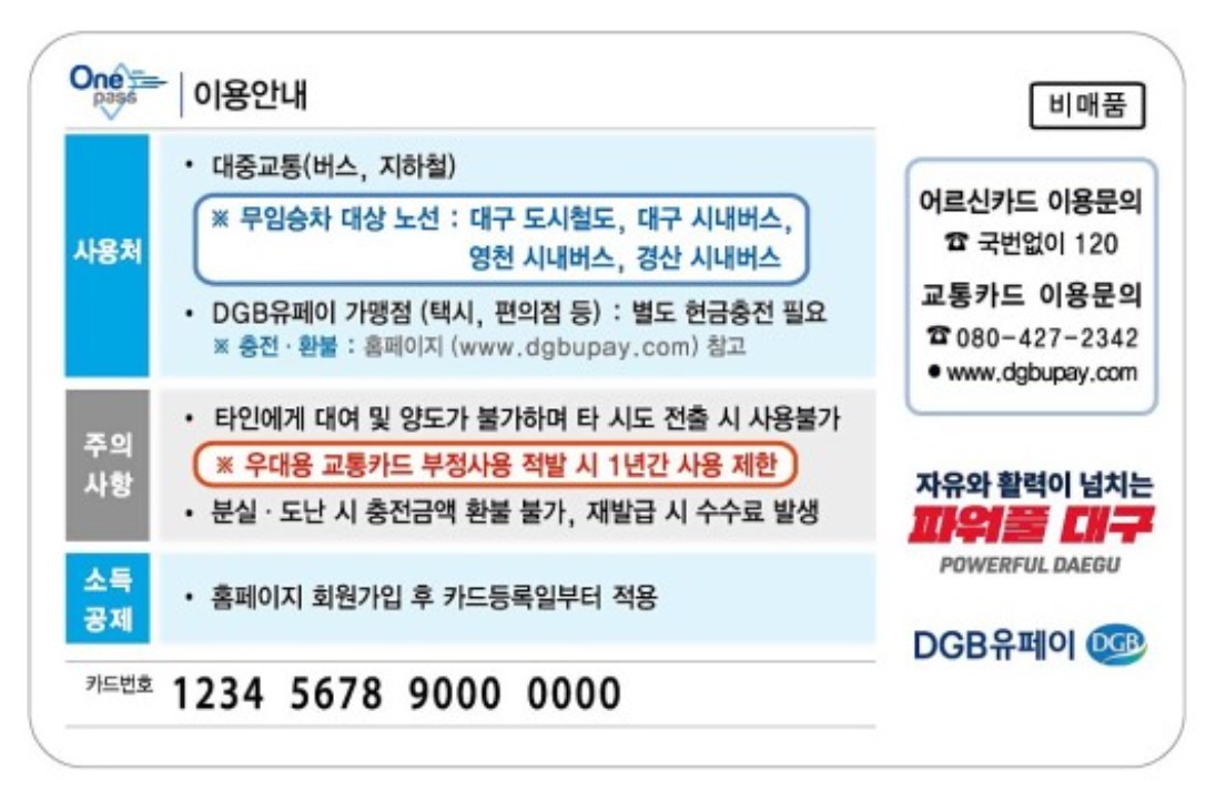 어르신 교통카드 충전및 사용처는 일반 선불카드와 같은 형식으로 진행되고, 충전된 금액이 차감되는 형식입니다. 사용하시고 소등공제로 돌려받게 됩니다. 어르신교통카드 사용처로는 대구(경산, 영천) 시내버스와 대구도시철도를 무료로 이용하실 수 있습니다.